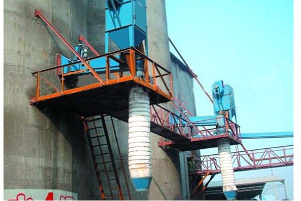 庫底散裝機安裝于地面,供汽車、火車等罐形容器裝料。主要由“卸料閘門輸送斜槽”彎頭下料接管散裝機除塵器斜槽風機”等組成。庫內部分通過支架吊掛在水泥庫內部,以10%的斜度放置,以使水泥料倉內的水泥粉呈流態化(此高壓壓縮空氣由用戶自備羅茨風機或由廠內壓縮空氣總管經減壓后接入出料連接槽”輸送斜槽”在水泥庫外按出料順序連接同樣以10%的斜度放置,正常使用時打開。