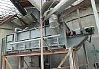 在裝有攪拌軸、葉片攪拌箱體底部,裝備帶有透氣層的充氣箱。充氣箱由羅茨風機鼓入高壓空氣、物料進入攪拌箱后,受攪拌箱底部充氣箱的氣化作用而流態化,之后由攪拌箱中攪拌軸葉片的作用而充氣攪拌,由于出料位置在攪拌箱的上部,經攪拌后的物料從出料口溢出。出料口以下的物料則與后續的進入攪拌箱內的物料再進行充分攪拌后經出料口溢出。由于攪拌箱內物料充分流態化,加上物料的溢流式結構,物料中的渣子將沉積在攪拌箱底部。待混料機工作到一定時間需停機時,從攪拌箱側面下部的清渣口清出。