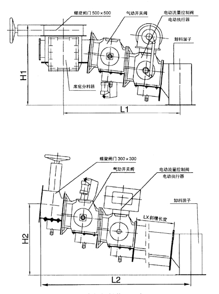庫底卸料裝置由庫底螺旋閘門、庫底分料箱、電動(氣動)開關閥、電動流量控制閥及卸料溜子組成,用于水泥生料粉或水泥的庫底卸料。庫底卸料裝置能自動調節卸料流量且均勻,其結構合理,操作維護簡單方便,最多可設三個卸料口,用戶也可選用庫側卸料裝置。