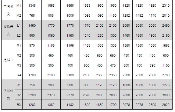 中部機殼--分為與上部裝置聯接的帶支撐中間節、帶檢視門中間節、標準中間節(均為 3.0米高)和非標準中間節。