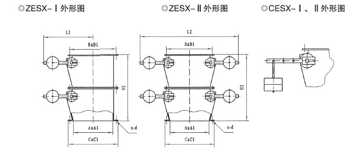鎖氣翻板卸灰閥為上下交替開閉,自動復位機構。分為:z為重錘自動復位機構,具有運轉平穩、節能,卸灰量大、小可調,卸灰、鎖氣可靠之功能。C為吊錘自動復位機構,具有占地面積省、節能,卸灰調節方便,卸灰、鎖氣可靠之功能。B為凸輪、連桿傳動,重量自動復位機構;D為凸輪、連桿傳動,彈簧自動復位機構,具有結構緊湊、設計合理、運轉平穩,卸灰、鎖氣可靠。是各種無粘度的固體粉料,小于Φ10mm的顆粒料,晶體料,團狀料,給、卸料工況的理想設備。Ⅰ型為單板卸料,Ⅱ型為雙板卸料。